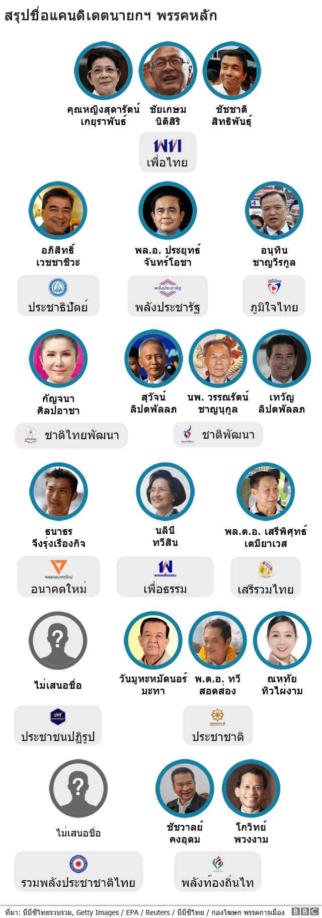 เล อกต ง 2562 ใครเป นใคร นายกฯ ในบ ญช พรรคการเม อง ท ผ านการประกาศของ กกต Bbc News ไทย
