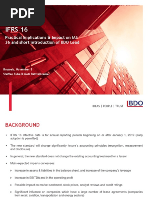 IFRS 16 specifies how an IFRS reporter will recognise measure present and disclose leases. For these leases the lessee includes the future lease payments in the cash flow forecasts when calculating the CGUs recoverable amount. In januari heeft de IASB de langverwachte nieuwe lease-standaard IFRS 16 uitgebracht.
